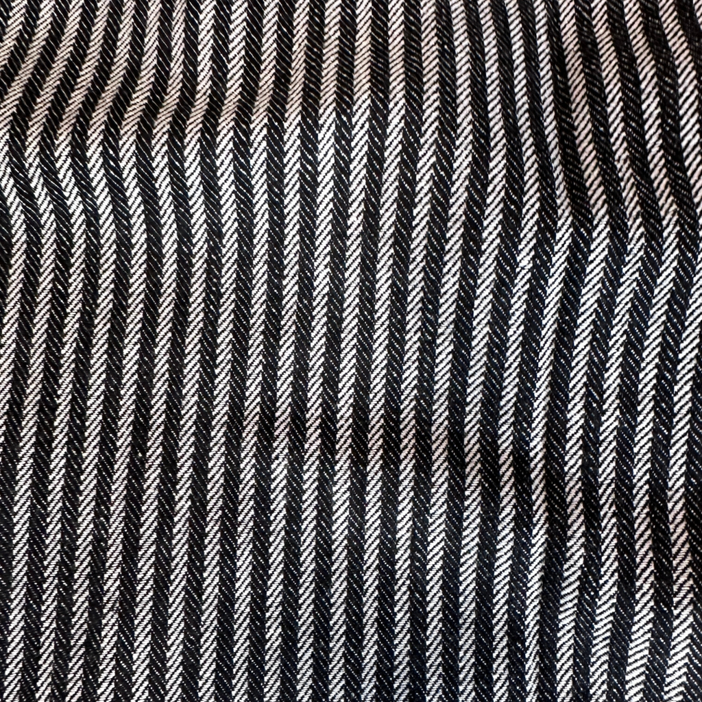縦のラインを強調するホワイトストライプが、スッキリとした印象を演出。シンプルながらも存在感のあるデザインで、大人の余裕を感じさせます。